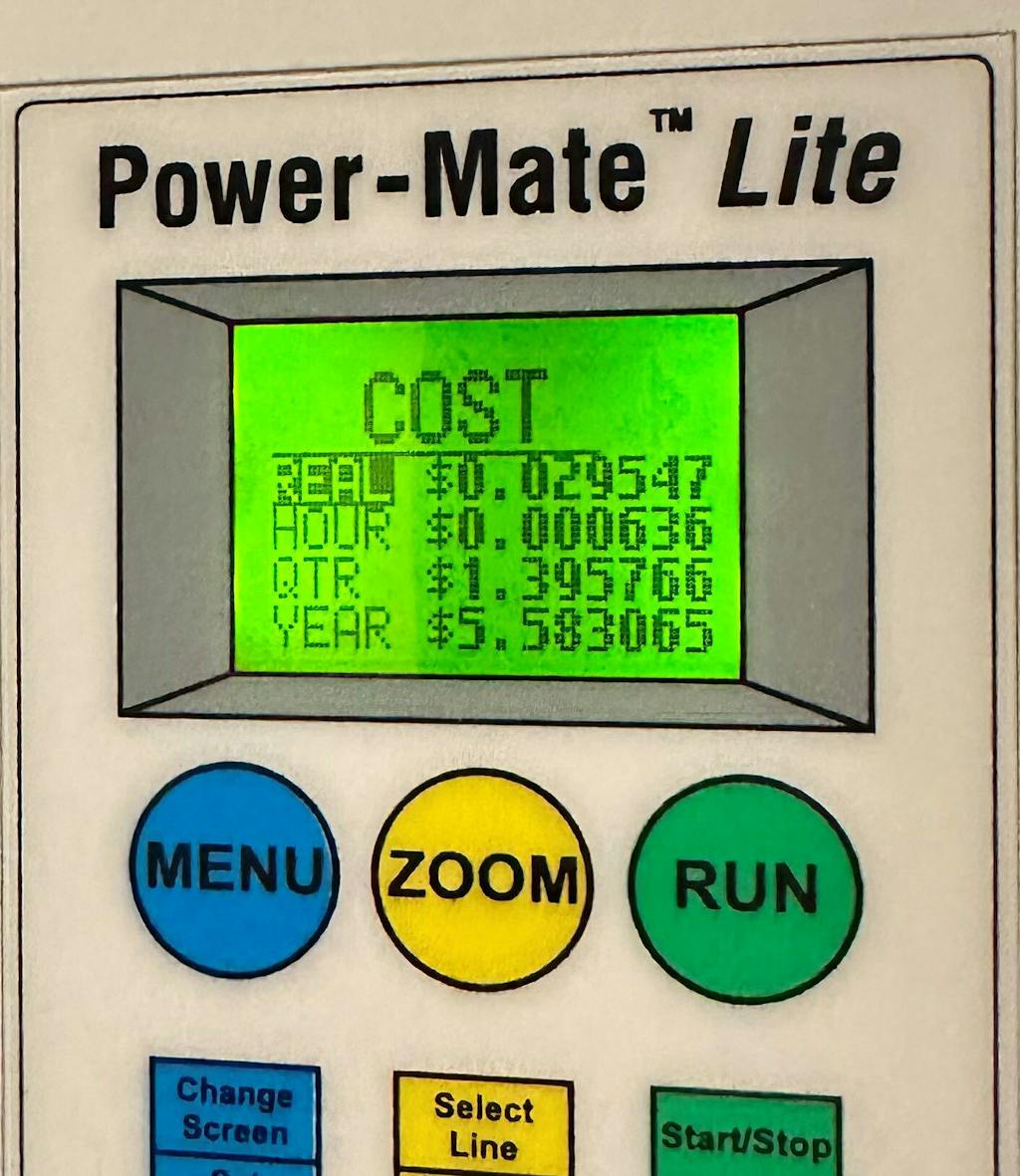 The Power-Mate Lite Power Meter worked perfectly, identifying my standby power consumption. Because we are working with such small power consumption, the Cost screen showing the various periods and costs was invaluable.