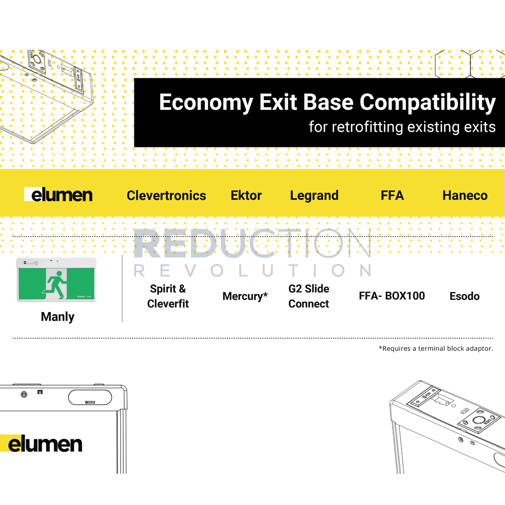 | Product Identifiers | Elumen Manly Economy LED Emergency Exit Sign; MANLY-EM Standard, MANLY-ST Self-Test, MANLY-LR Networked. |