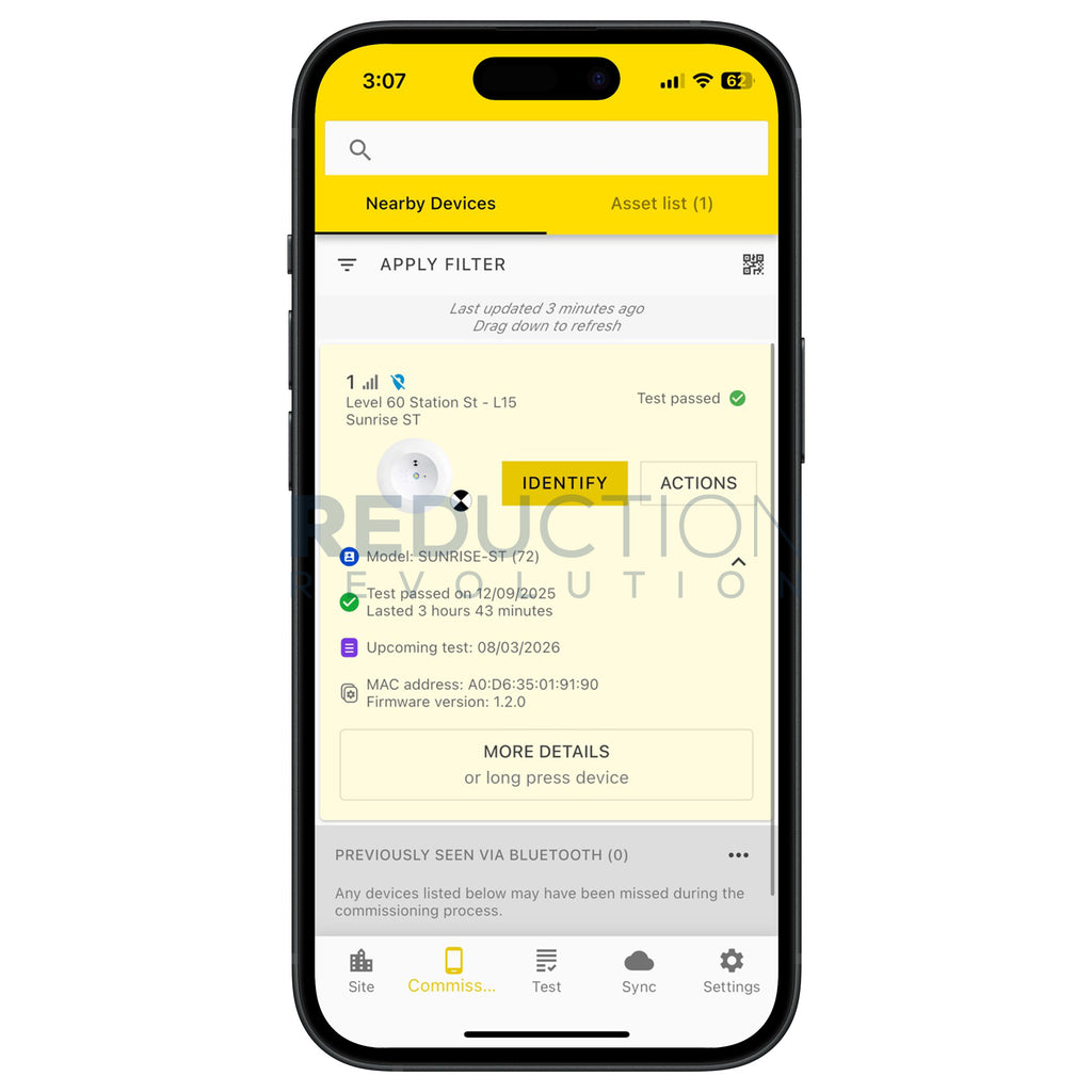 - Easy set-up and data collection. Each exit sign connects to the Elumen app via bluetooth. Simply walk past each light to gather results. The app includes a floor-plan integration and exportable Annual Fire Safety Statement (AFSS) reports.