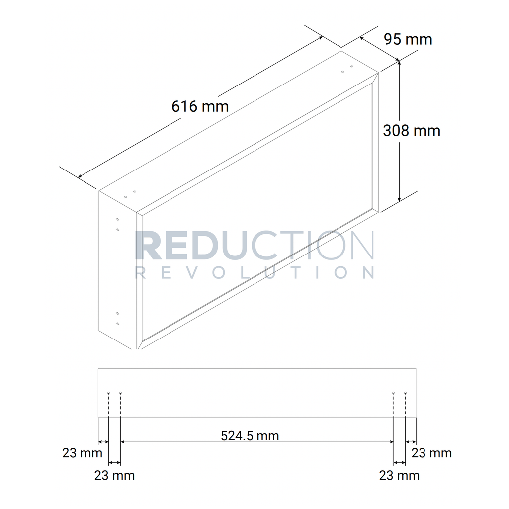 | Dimensions | 616mm (width) x 308mm (height) x 95mm (depth) |