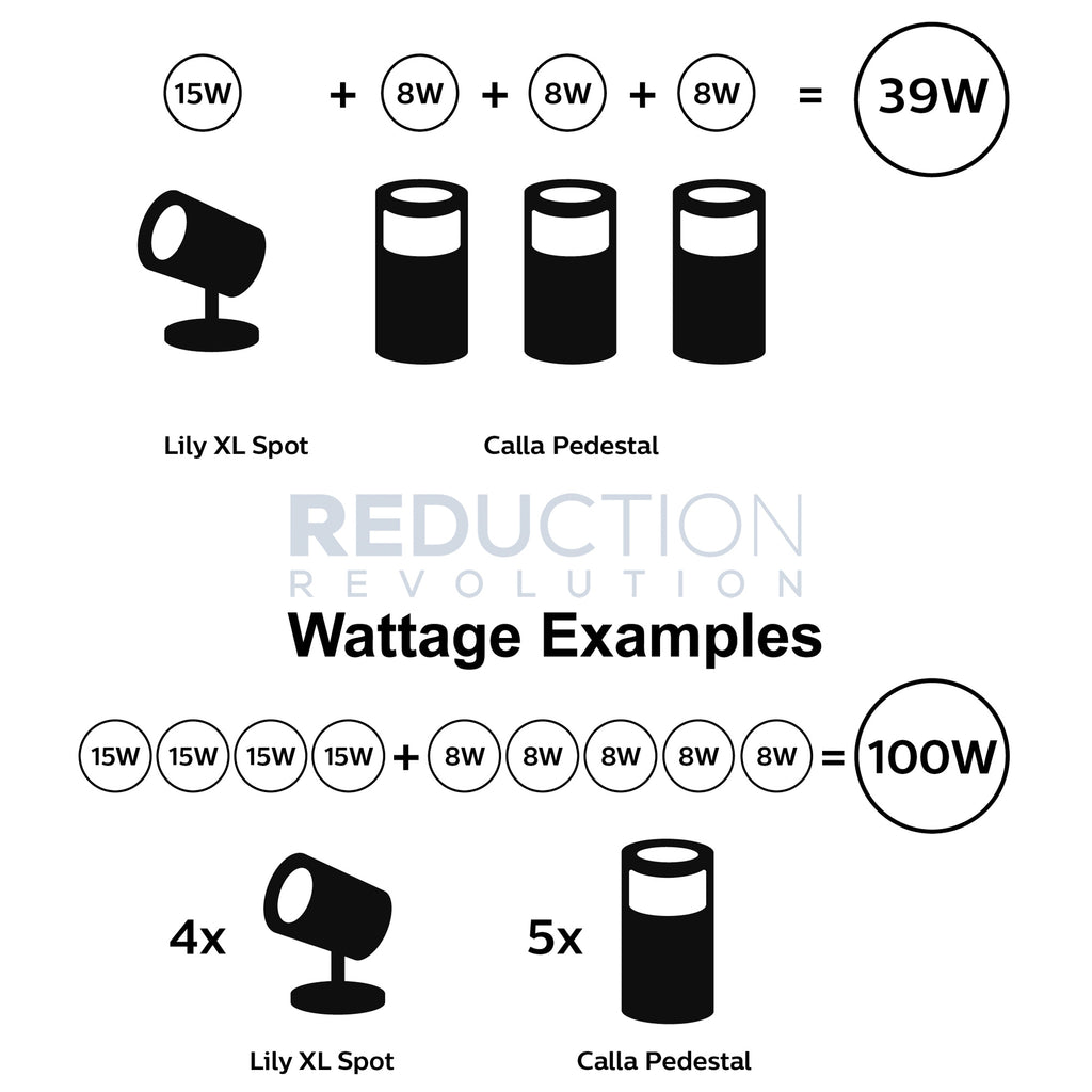 - 40W Power Supply: Best for smaller setups. Ideal for powering a specific zone, such as a pathway with 4-5 Calla bollards or a few Lily spotlights.